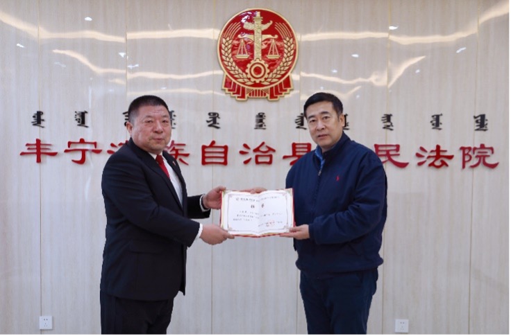 揭牌仪式后,孙江为丰宁法院王海涛、任瑞飞、王爱军颁发了研究生实务导师聘书,为学院“专业学业实务”三轨并行的“三导师制”贯彻落实扩充力量。
