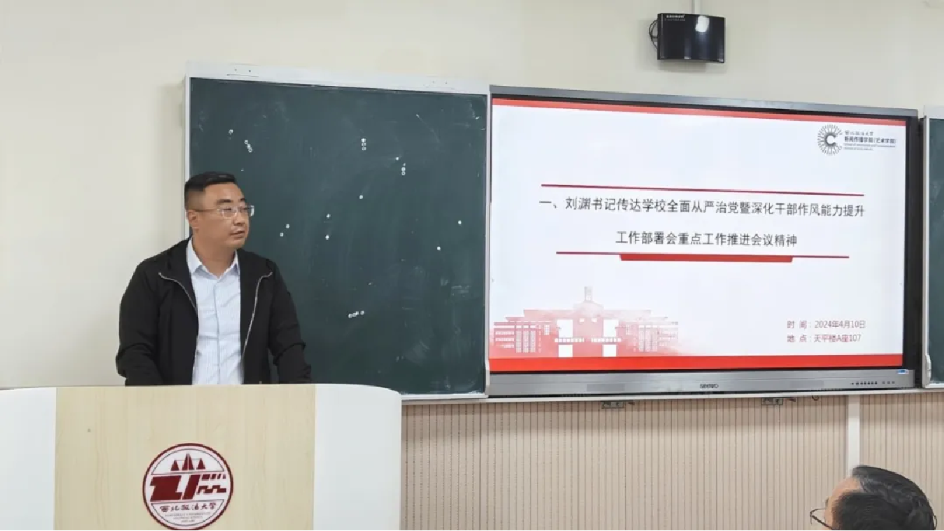为进一步做好本科教育教学审核工作,切实提升人才培养质量,4月10日,做爱视频 在长安校区天平楼A107教室召开全体教职工大会,全体教职工参会,学院党委副书记、副院长秦音主持大会。