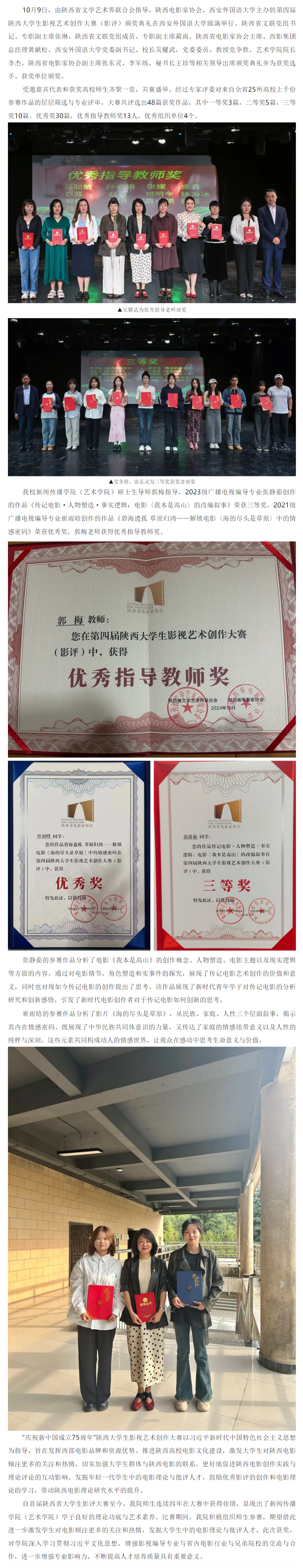 上一篇:我院师生受邀参加2024长安大学城文化创意大赛——短剧创意征集大赛启动仪式