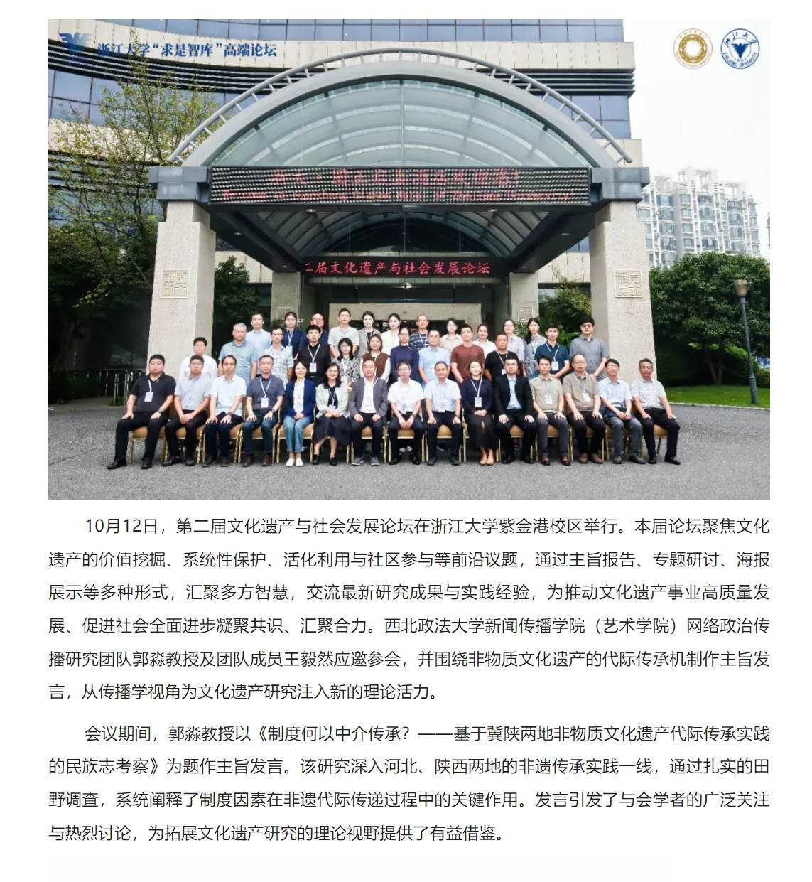 我院师生受邀参加第二届文化遗产与社会发展论坛并作主旨发言