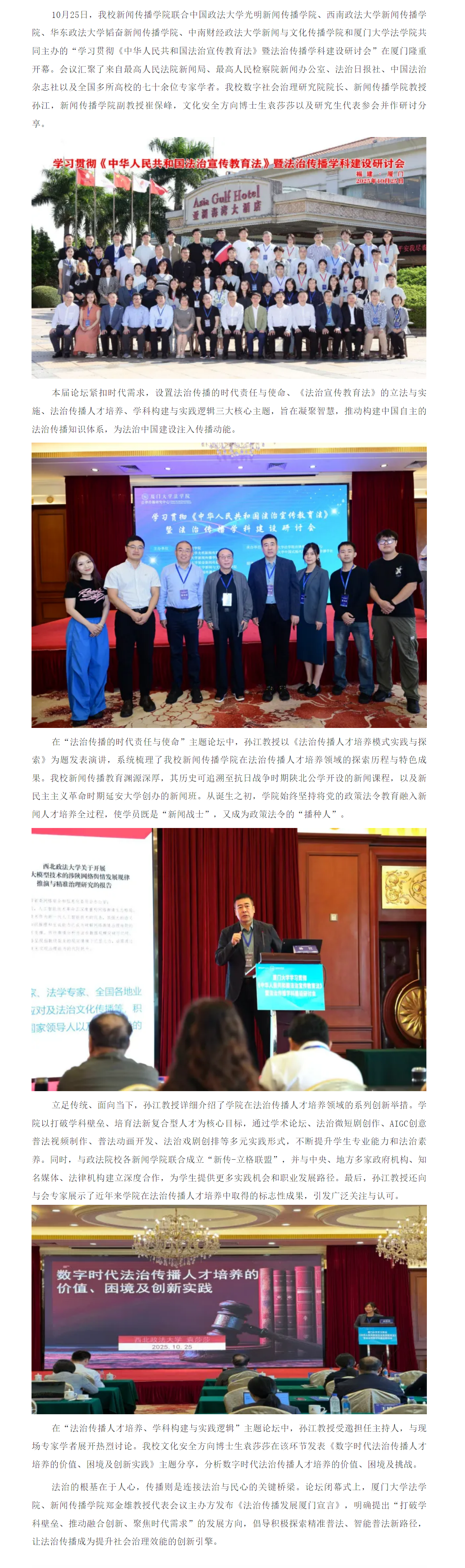 我校做爱视频 联合主办的法治传播学科建设研讨会在厦门闭幕