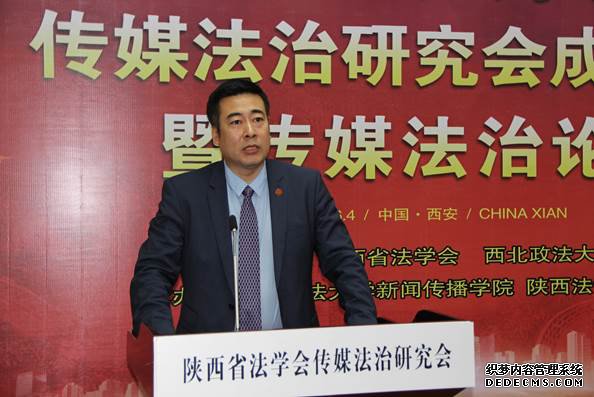 党的十八届四中全会提出了建设社会主义法治国家的目标,但媒介融合的发展给民主决策、国家治理、国家软实力建设等方面带来诸多新的问题与实践形式。陕西省法学会副会长杨建军在发言中表示,传媒法治研究会的研究领域是一个新兴学科和交叉学科,既包括新闻学、传播学,又涉及法学,一定程度上填补了法学研究和对策应用研究的空白。研究会作为传媒法治和法制新闻理论与实践的交流合作平台,旨在促进陕西各高校传媒法和法制新闻学研究以及与新闻实务界、宣传主管部门、传媒立法和审判实践的互联互通。