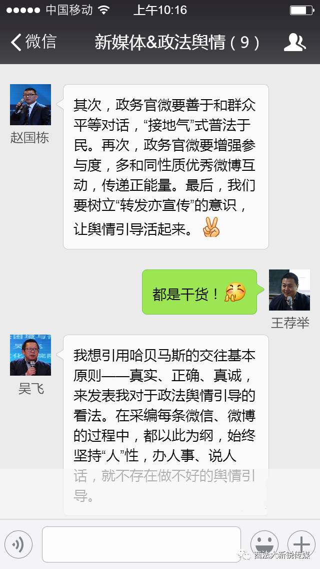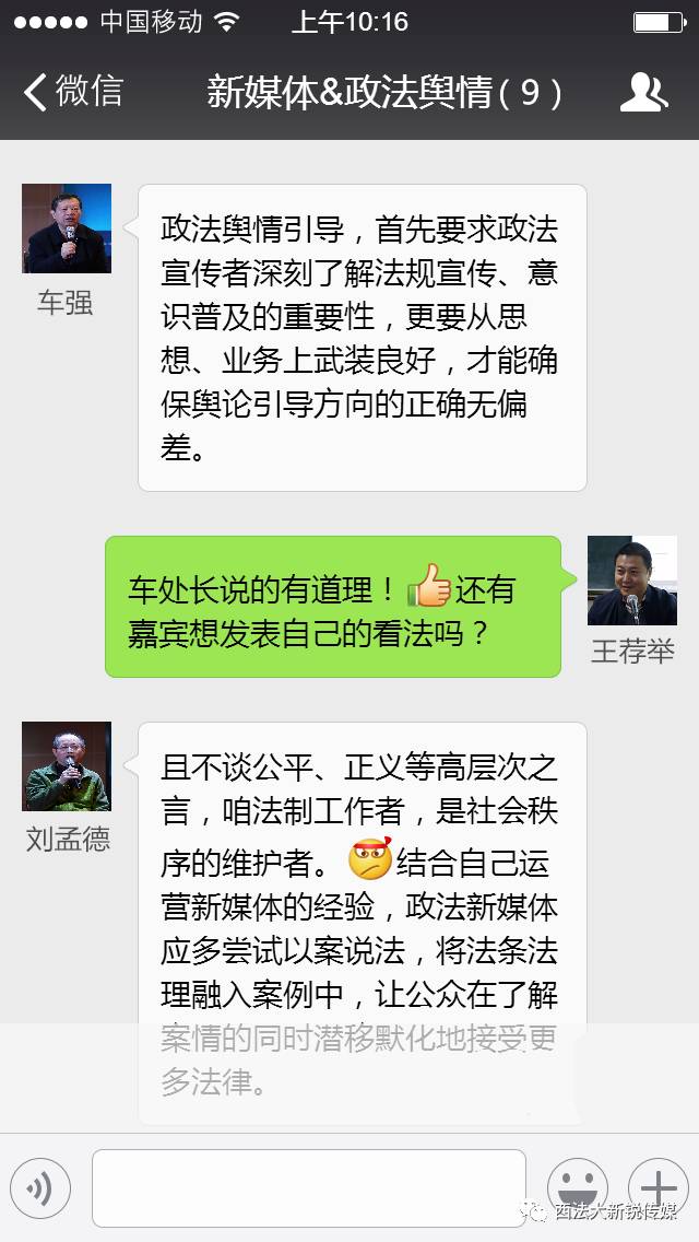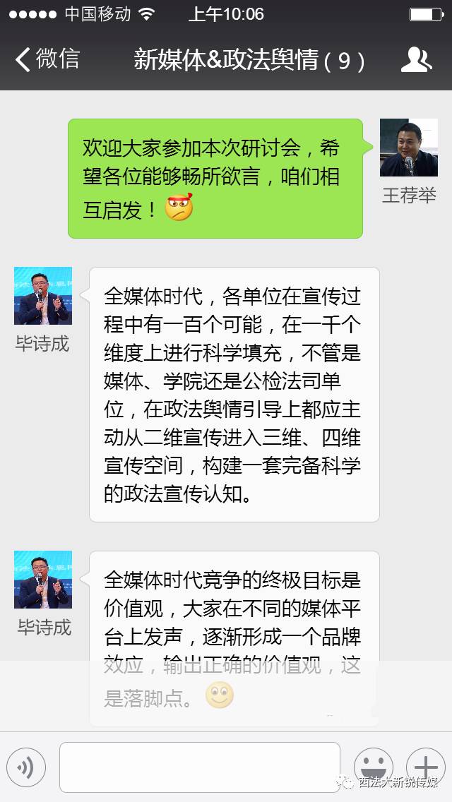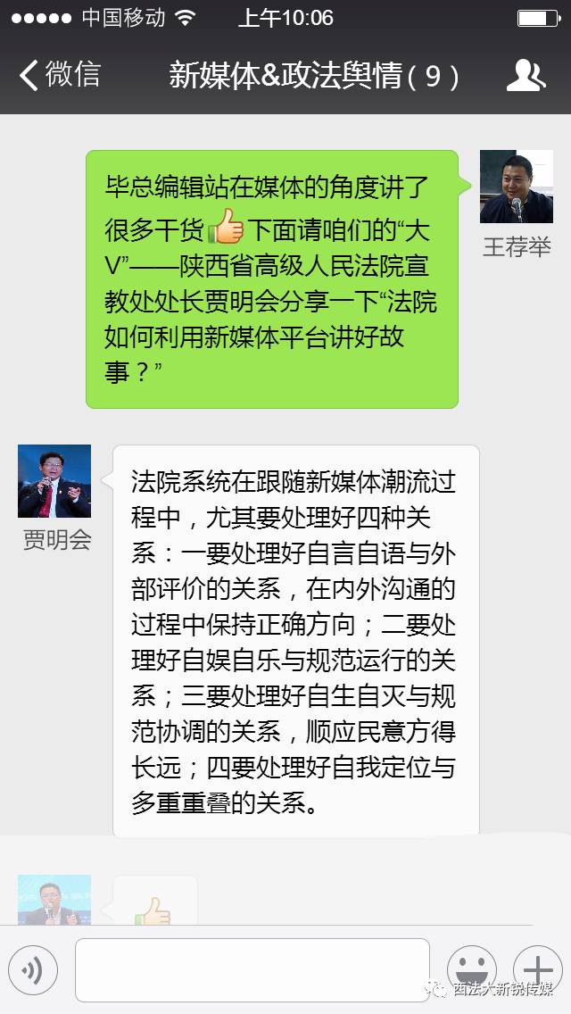 的邀请,自己是抱着取经的心态来学习的。尤其是看到此次论坛集纳了陕西省政法干线的一线工作者和媒体工作者,在思维与经验的交锋中吐故纳新,自己感触颇深。吴飞教授还表示,争取能将论坛的成功经验带回浙江大学。