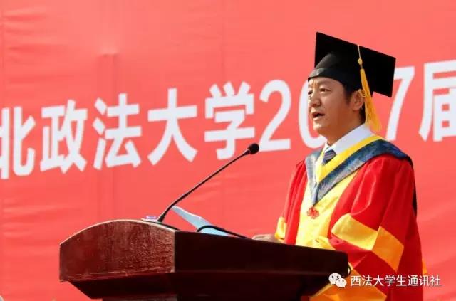 亲爱的同学们、老师们、朋友们,今天毕业的同学们在西法大的校园里求学成长度过了千余个日日夜夜,我则在这里学习、生活、工作了整整38个春夏秋冬。不管时间长短,当我们要转身告别时,都对这所学校充满了留恋和不舍,以后无论走到哪里,我们都会记得大秦岭下的这座天平楼,还有天平广场上的这棵老槐树。这里是我们的根,这里有我们的魂,这里是我们永远的精神家园。请大家时时刻刻记住我们的母校,并为她加油呐喊,为她祈福祝愿。