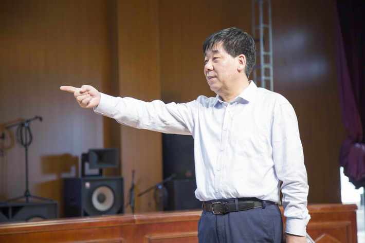在参观考察中,相关部门负责人对剧场立项、建设情况等方面进行了详细介绍,杨校长参观后对剧场的改造情况给予了高度评价,并针对性的对剧场的后续完善工作提出了宝贵意见。在考察剧场的舞台和化妆间时,杨校长发现观众席楼梯没有显著的提示标识,这给学生的上下行走造成了一定的安全隐患,他提出要求增加楼梯标识,进一步完善安全设施。
