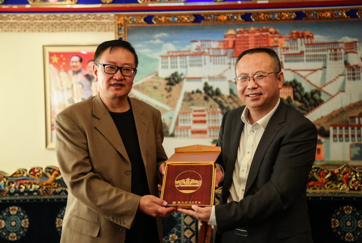 (副校长漆思教授代表学校向西藏日报社赠送纪念品)