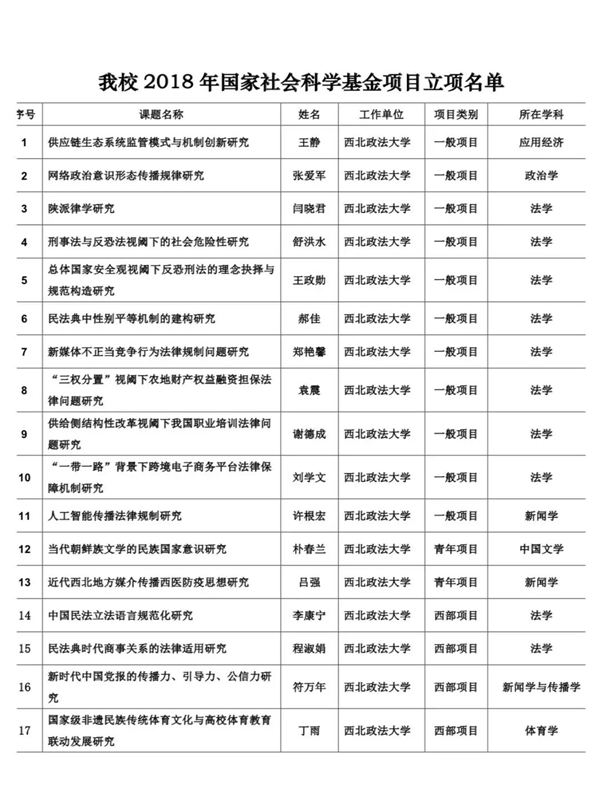 与此同时,我校法学专业在2018年社科总立项数排名中也名列前矛,排名第三。