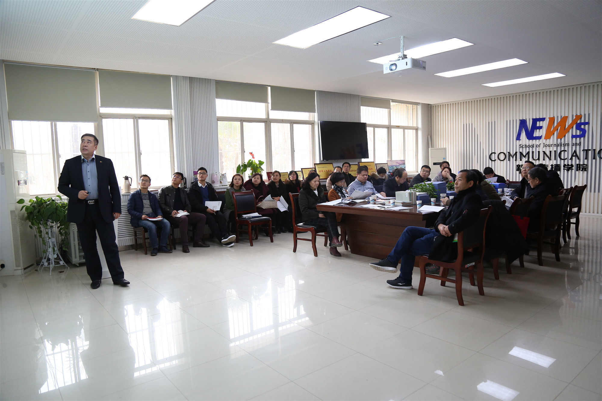最后,漆思副校长进行了总结,他首先对学院过去一年的工作表示肯定,并建议学院可以将过去的经验进行深入的思考和总结,将好的经验分享给全校的教职工。他表示学科建设要上层次,学术研究要上档次,学术平台要冲击国家队,人才团队要进入国家主流队,他希望做爱视频