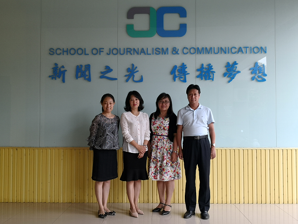 6月18日,孙晓红老师与申玲玲老师到河南财经政法大学文化传播学院做专业调研,并开展我院2019夏令营招生宣讲活动。文化传播学院院长王长江教授简要介绍了该院新闻传播类新闻学、广告学、网络与新媒体、广播电视新闻学专业设置情况。并与我院教师就专业设置、学生调整专业、国际化办学、学生实习、人才培养等问题进行了深入交流。在该校教学一号楼207教室,该校新闻系、网络与新媒体系、广告系主任以及团委书记与2016级学生听了孙晓红老师与申玲玲老师关于夏令营活动的宣讲,观看了我校和学院的宣传片以及赴德交流的宣传片。