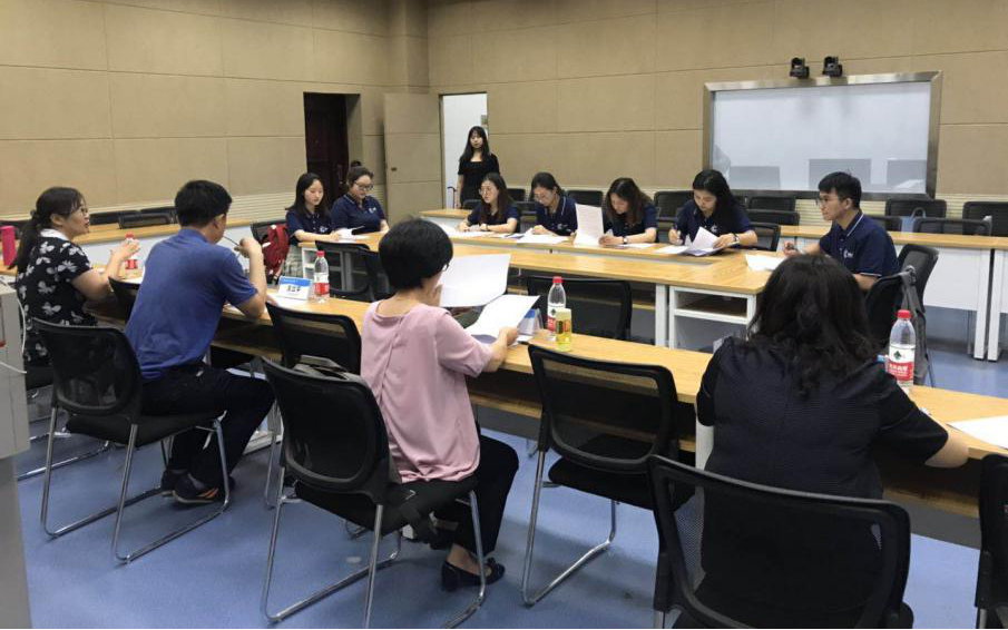 第一组的考官由我院罗朋老师、王立平老师、申玲玲老师,王翎老师组成。