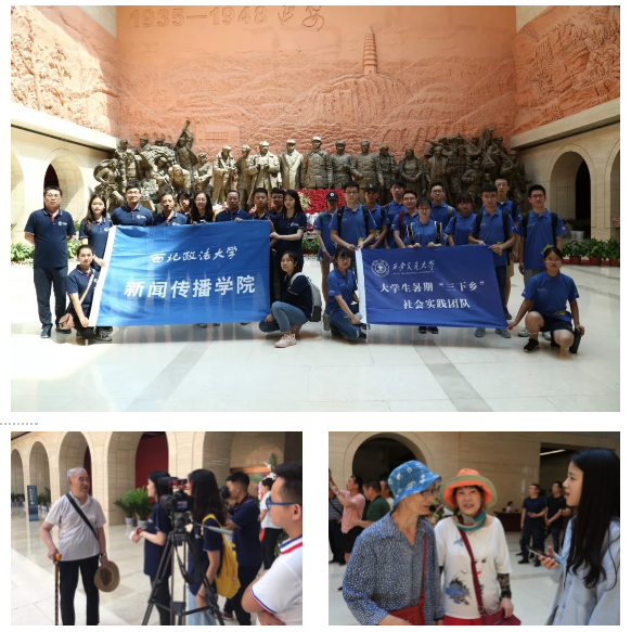参观结束后,同学们在老师的带领下分别对馆内的工作人员、老少游客以及前来实践调研的西交大的学生,就来此处的目的和对红色文化的见解等方面进行了简短的采访。延安革命纪念馆工作人员告诉我们,从四月份开始到十月份属于延安旅游旺季,这一时期馆内每天的客流量平均在三万左右,绝大部分游客是以团队的形式来此进行参观学习,其中学生团体和企事业单位数量居多,平日中注重结合节假日进行多样化的宣传。学生们对多个对象的采访活动可以为暑期三下乡积累素材。