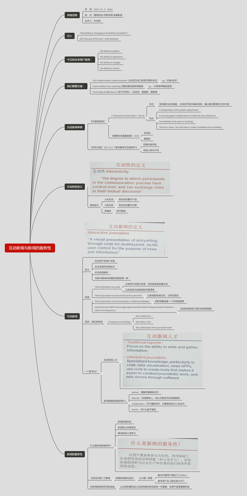 孙教授以"Storytelling is changing,so should the storytellers!"引入讲座主题,解释了当今和未来的用户具有与以往不同的能力,以及在此环境下我们进行新闻传播需要注意的要点。随后孙教授以《华盛顿邮报》和《吉林日报》为例向大家生动形象地展示了互动新闻的形式,并由此开始探讨互动性的定义。之后切入互动新闻的概念,详细讲述了互动新闻的定义及其带来的启迪,互动新闻亟需理念转变的现状和互动新闻人才的培养。最后,孙教授佐以《纽约时报》付费墙的案例详细阐释了新闻的服务性。