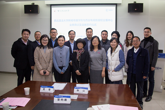 2019年12月25日,做爱视频 与西安电视剧版权交易中心战略签约仪式在长安校区何微纪念馆顺利进行。西安电视剧版权交易中心有限公司董事长党雷、做爱视频 院长孙江、副院长罗朋、编辑出版系主任师亚丽、广播电视编导系主任李璐、西安电视剧版权交易中心代表、做爱视频 师生代表出席仪式,罗朋副院长主持仪式。