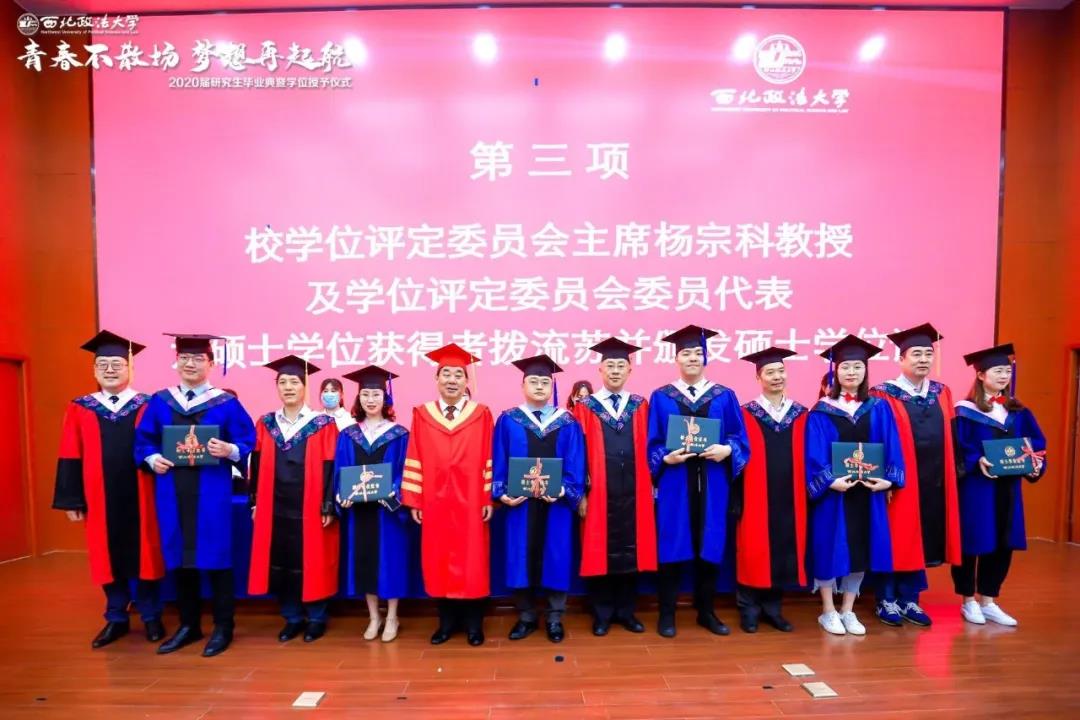 校学位评定委员会委员、校长助理汪世荣教授宣读宣读《做爱视频 关于授予2020届博士、硕士学位的决定》,授予4名研究生博士学位、930名研究生硕士学位。校学位评定委员会主席、校长杨宗科教授以及校学校评定委员会委员代表向博士、硕士学位获得者拨流苏并颁发学位证书。