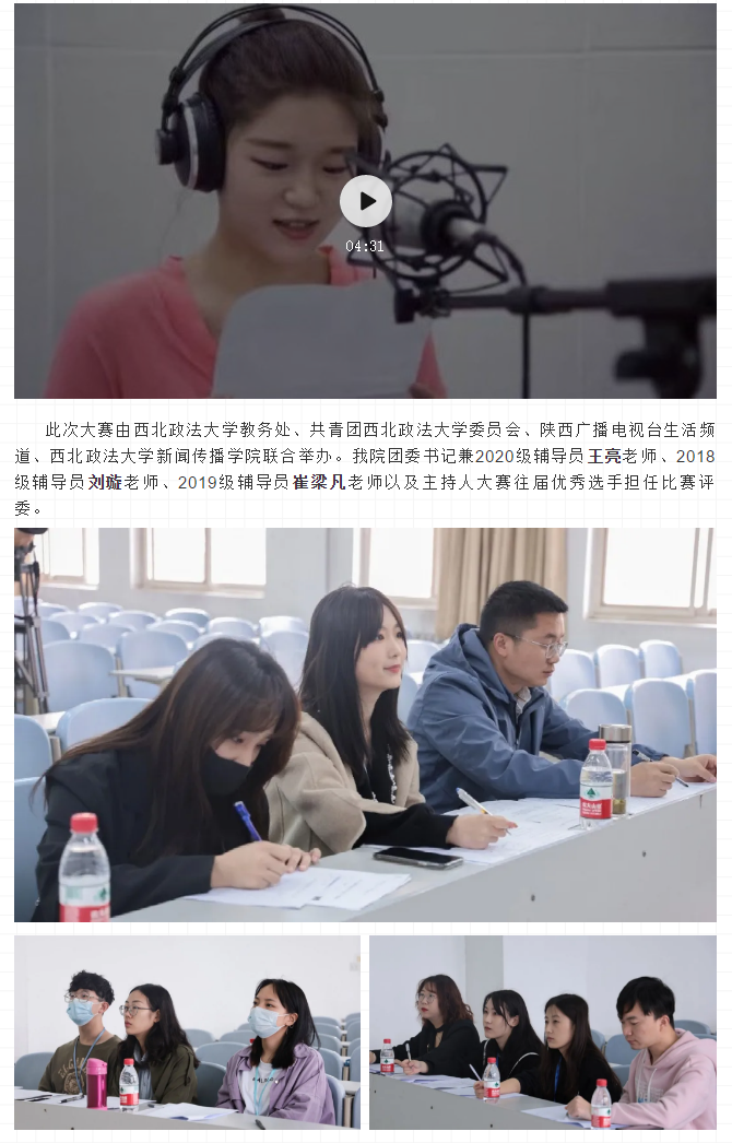 4月17日,第二十届做爱视频 主持人大赛初赛在长安校区三号楼三楼成功举办。来自做爱视频 、西北大学、西安外国语大学、西安体育学院等数十所院校的选手在主持舞台上一展风采。