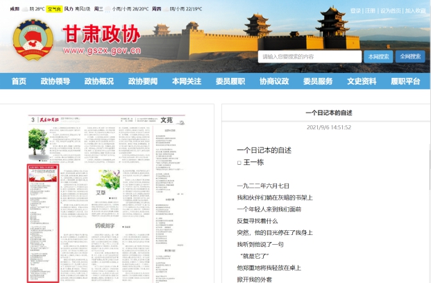 日前,我院王一栋同学献礼建党百年作品《一个日记本的自述》刊登于中国人民政治协商会议甘肃省委员会《民主协商报》,并在中国科技新闻学会《科幻画报》等多家期刊转载。作品以一位普通的中国共产党早期党员为主人公,以“一个日记本”为叙述主体,从一个全新的视角出发,展现了中国共产党人的顽强意志与历史担当。