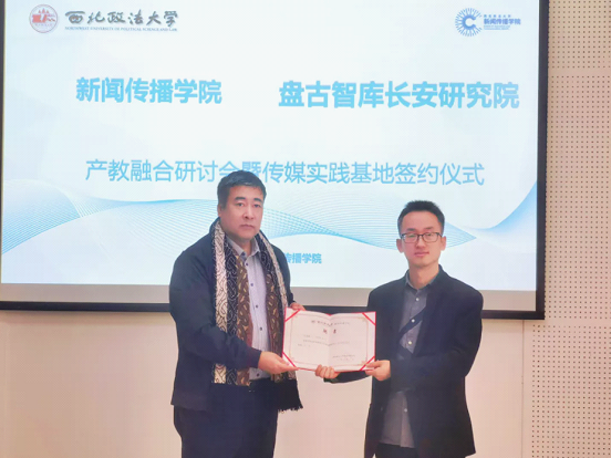 随后,学院党委书记刘渊与陈智慧共同为实践教育基地揭牌,孙江为陈智慧与马妤颁发本科生实务导师聘书,秦音与马妤进行共建实习实践基地签约。