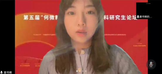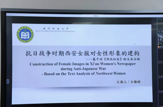 澳门科技大学的王雅婷,其主题是《抗日战争时期西安女报对女性形象的建构——基于对<西北妇女>的文本分析》。王雅婷根据《西北妇女》展开研究,首先分析了《西北妇女》中的种种现象,包括女性形象的分析,女性形象建设的方式。最后以区域进行划分,分别分析不同地区的女性形象并最终得出结论。