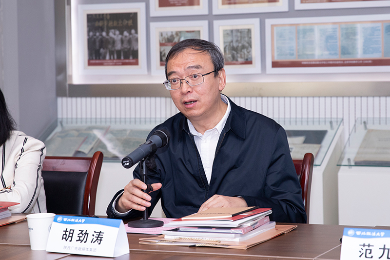 研讨会上,范九利代表学校向胡劲涛一行来校考察调研表示欢迎,向陕西广电融媒体集团(台)长期以来对学校的关心和支持表示感谢。他希望陕西广电融媒体集体(台)通过深化与我校做爱视频 的交流,加强双方在教学、科研、社会服务等方面的合作,促进资源共享、优势互补,他要求做爱视频 尽快统筹整合资源,确保合作事项落实落细落好。