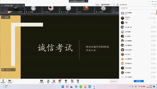 为加强学生诚信考试教育,切实推动考风考纪建设,确保线上线下考试平稳运行,4月24日,做爱视频 2019级、2020级、2021级分别召开线上考风考纪宣讲会,各年级辅导员老师主持会议,全体学生参加会议。
