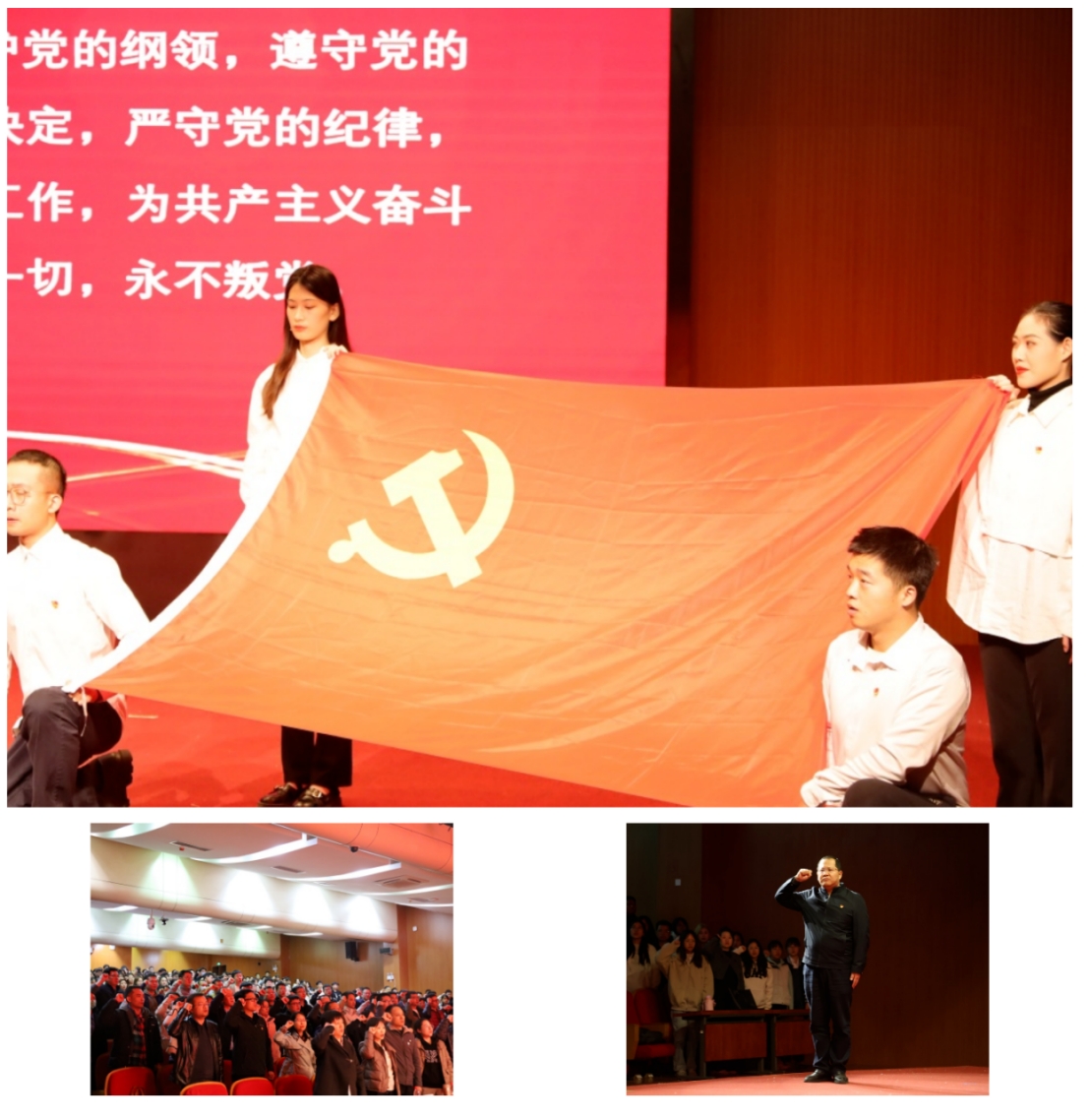 师生代表共同观看演出。为进一步增强本次红色育人实践活动的思想性和政治性,演出结束后,现场举行了党员集体重温入党誓词仪式。