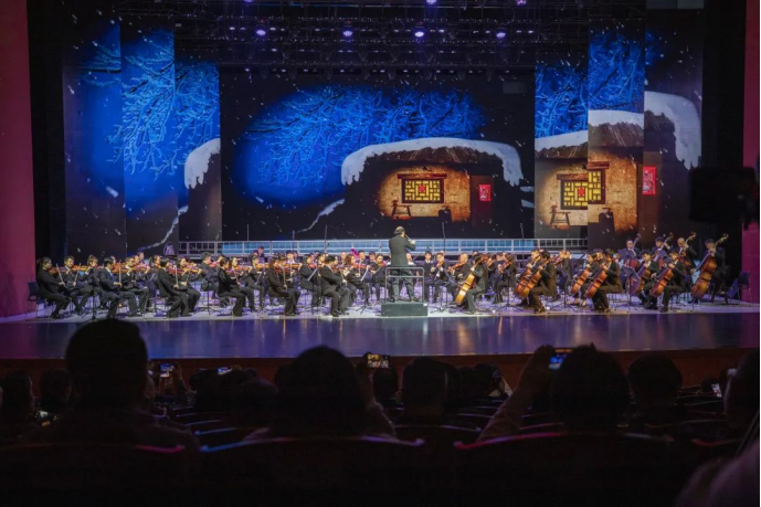 音乐会拉开序幕,耳熟能详的旋律响起,承载着几代中国人的记忆,交响乐团演奏舞剧《白毛女》序曲,带领大家重温这扎根人民大众,从人民中汲取创作灵感的经典作品,只有不忘来时路,才能深知如今盛世的来之不易。