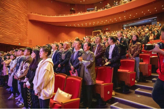 交响序曲《红旗颂》前奏一响,立刻点燃全场气氛,激昂澎湃的乐曲感染了在场的每一位师生。多种乐音交相呼应的中国之音,振奋了观众精神,激发了爱国热情。